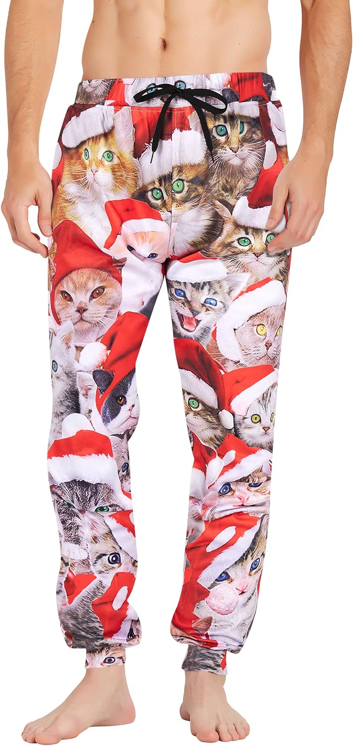 - Skin-Friendly Material: mens jogger pants Made of high quality polyester and spandex, soft and comfortable to wear. Advanced 3D digital printing technology, clearly funny printed pattern, machine or hand washable, won't fade after washing.